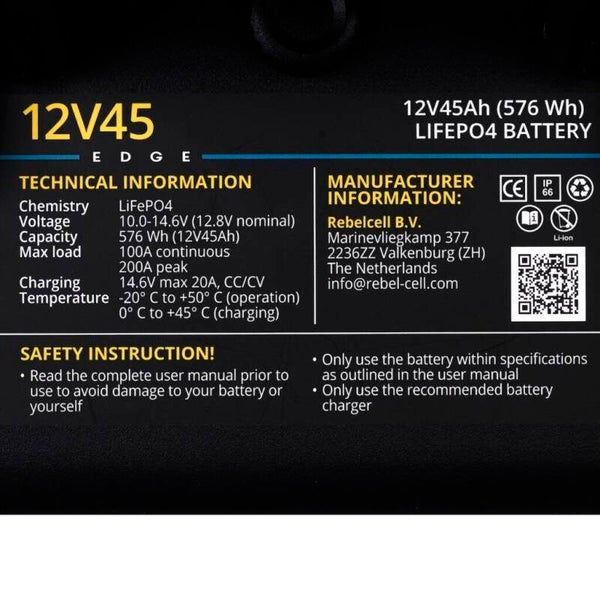De compacte, robuuste en lichtgewicht Rebelcell Outdoorbox 12V45 EDGE (12V45Ah / 576 Wh) combineert slimme technologie, topprestaties en gebruiksgemak. Met kenmerken zoals IP66-waterdichtheid, 3 jaar garantie, een geavanceerd Batterij Management Systeem (BMS) en naadloze monitoring via de Rebelcell BT-app, is de Outdoorbox de ultieme weerbestendige stroomvoorziening: energievoorziening voor 12V elektromotoren, dieptemeters en camping.