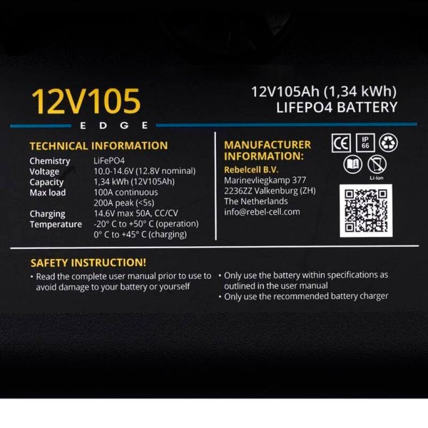 De compacte, robuuste en lichtgewicht RebelcellOutdoorbox 12V105 EDGE (12V 105Ah / 1.3 kWh) combineert slimme LiFePO4 technologie, topprestaties en uitzonderlijke betrouwbaarheid—perfect voor jouw volgende outdoor avontuur. Dankzij Bluetooth-connectiviteit is deze naadloos compatibel met vrijwel alle 12V elektromotoren en dieptemeters, waardoor het de ultieme weerbestendige 12V-voeding is.